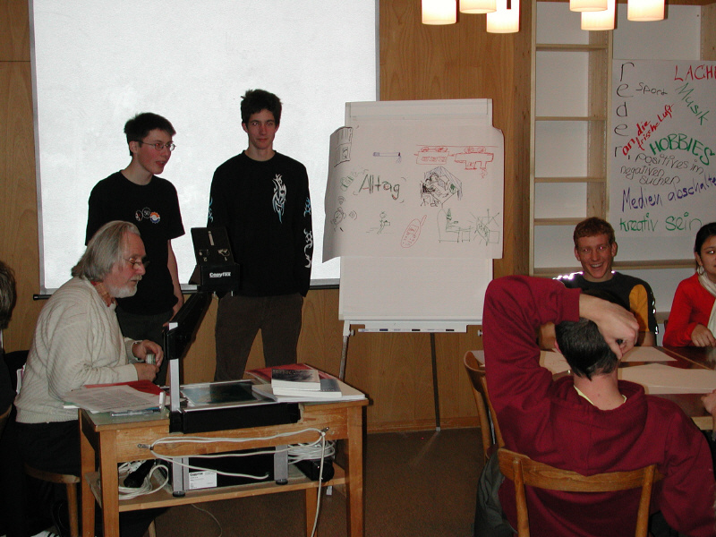 Werner Fritschi (Publizist, Pädagoge, Psychologe, ...) war von Sonntag Abend bis Mittwoch Morgen unser Gast. Er vermittelte uns in seiner wunderbaren und eindrücklichen Vortragsweise und auch mit Gruppenarbeiten die vielen Ideen und Weisheiten, welche in 'Le Petit Prince' von Antoine de Saint Exupéry und in der (griechischen) Sage von Ikarus zu finden sind.