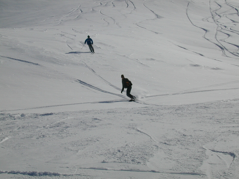 Wie jeden Morgen erwachten wir nur sehr mühsam. Wir fanden aber doch rechtzeitig den Weg in den Aufenthaltsraum, um das Morgenessen zu geniessen. Nach unserem gemütlichen Morgenessen, kam wieder Herr Fritschi, der uns schon den letzten Abend, viele interessante Dinge über das Thema "Fliegen lernen" erzählte. Die Lehrlinge waren aber am Morgen nicht so motiviert wie am letzten Abend. Das könnte daran gelegen haben, weil vielleicht alle schon die Pisten im Kopf hatten. Diesen Morgen erzählte Herr Fritschi vom Absturz, wie man wieder aufstehen kann. Es war sehr interessant. 9.15 Uhr beendete er seinen Vortrag. Wir fassten unseren Lunch und stürzten in unsere Zimmer um uns in die Ski-und Snowboardkleider zu schmeissen. Nach kurzer Zeit waren wir gerüstet mit Snowboard und Ski in der Gondel nach Sillieren. Oben angekommen bildeten sich Gruppen. Unsere Gruppe fuhr den Morgen, um warm zu werden, die Piste Aebi hinunter. Desto tiefer wir hinunterfuhren, desto mehr Nebel gab es und so sahen wir kaum noch was. Wir gingen nach dem Lunch Richtung Hahnenmoos. Dort war es das schönste Wetter, blauer Himmel und die Sonne strahlte. Der Schnee war super, da es am Sonntag die ganze Nacht schneite, es war ein genialer Neuschnee. Die, die nicht Snowboard oder Ski fuhren, gingen ins Dorf einkaufen und schwatzten in ihren Zimmern. Um 17.00 Uhr mussten die Ersten schon wieder im Aufenthaltsraum sitzen. 18.30 Uhr gab es das leckere Abendessen, aber es war zuwenig, so musste der Chefkoch noch das letzte Abendessen aufwärmen, da wurden auch die Hungrigen befriedigt. Nach dem Essen, begann wieder Herr Fritschi mit Thema "Fliegen lernen" und das Nebenthema war diesmal: "Wie gerät man in einen Absturz?". Wir durften dazu kreative Zeichnungen machen. Am Abend gingen die einen in den Ausgang und die anderen spielten im Aufenthaltsraum Spiele. Auch am Montag wurde es für viele spät.