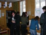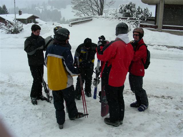 Um 7:30 begannen wir wie immer den Tag mit einem wunderbaren Frühstück. Eine halbe Stunde nach dem Frühstück begannen die Leiter mit ihrem Vortrag. Nämlich über das vernetzte System der Welt. Zu diesem Thema zeigten sie uns einen interessanten Film. Am Schluss bekamen wir den Auftrag, verschiedene Themen, in Gruppen vorzubereiten um sie am nächsten Tag präsentieren zu können. Nachdem dem Vortrag merkten wir, dass das Wetter leider nicht ganz so toll war wie das Frühstück. Es hat geregnet und es war eisig kalt. Die meisten Leute vom Lager blieben zu Hause, da das Wetter nicht gerade Wintersport freundlich war. |