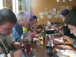 Wie jeden Morgen wurde ein Teil der Lehrlinge vom lässig tschäppernden und kommerzielle Musik wiedergebenden Radio geweckt. Zum Glück müssen dieses Schicksal nicht alle teilen, da die Musik nicht in alle Räume vordringt. Einige dürfen durch das entspannende Gepiepse des eigenen Weckers aufwachen. Beim Morgenessen im Aufenthaltsraum erwartete uns wie immer die erfrischende Kälte, die unseren Körper so stark mit Zittern beschäftigte, dass wir vor dem Einschlafen bewahrt wurden. Nicht nur die verschiedenen Müesli kommen bei allen gut an, auch der Kaffe erfreut die Gemüter. Während die einen nach dem Essen ins Zimmer trotteten, um noch ein wenig Musik zu hören, ackerten sich die anderen in der Küche ab beim Tische putzen, Geschirr spülen und Essen verräumen. |