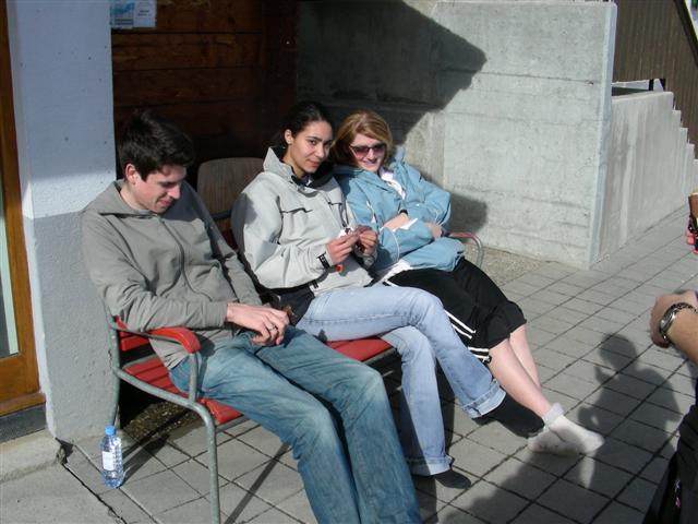 Dem anschliessenden Vortrag von Werner Fritschi über nachhaltiges Denken und Handeln wurde trotz früher Morgenstunde erstaunlich viel Aufmerksamkeit geschenkt. Danach gingen viele Grüppchen Snowboarden, Skifahren oder Wandern. Die Pistenverhältnisse waren super, das Wetter unerhört und daraus resultierte ein sehr hoher Funfaktor. Obwohl die gelungenen Sprünge eines gewissen Skifahrers, dessen Jacke sich nicht verschlissen lässt, mehrere Snowboarder deprimierten, war es ein toller Skitag. Fast wurde darum die abendliche Theoriestunde verpasst. Andere blieben den ganzen Tag zu Hause, bereiteten sich mental auf den Abend vor, um das gewaltige Nachtleben in Adelboden auch in vollen Zügen geniessen zu können, und erfüllten den Sinn eines Aufenthaltes in einem Skigebiet, indem sie sich immer mal wieder die Mühe gaben, einen Blick durch die von Vorhängen halb verdeckten Fenster zu werfen, und die Natur zu betrachten. So wurde es auch unserem Koch nie langweilig, da er sogar am Mittag seiner Arbeit nachgehen durfte. Die Theoriestunden waren wie immer sehr interessant und lehrreich. Am Abend wurde unser Dreamteam dem Ruf als Spitzenköche berecht, und sie zauberten ein so köstliches Mah Mee her, dass sogar ein zweiter Topf aufgetischt werden musste. Um das Ganze noch zu toppen, gab es als Dessert caramelisierte Apfelschnitze. Eine Stunde später wurde Herrn Fritschi wieder das Wort übergeben. Am Morgen hatte er uns aufgetragen, geistig etwas vom Tag mitzunehmen. Da dies nicht alle richtig verstanden hatten, tauchten einige Tannenästchen und Steine auf. Herrn Fritschi forderte uns dazu auf, kreativ zu werden und das emotionsgeladene Bild mittels Fingerfarben, Farbstiften und Filzern auf Papier zu bringen. Erstaunlicherweise entstanden verschiedenste kleine Kunstwerke, die später vom Künstler erklärt wurden. Von Spiralen über Vögel bis zu Brillen wurde alles verbildlicht. Bedauerlicherweise wurden nicht alle Künstler richtig verstanden. Ein Leiter befreite uns netterweise von den nicht vorhandenen Lösungsmitteldämpfen und erfrischte uns mit einer kühlen Brise, indem er während der Pause alle Fenster weit aufriss. Da der Raum bald die Aussentemperatur erreicht hatte, nahmen ihm einige Lehrlinge höflicherweise die Arbeit ab, die Fenster wieder zu verschliessen. Nach der Pause wurden wir von Herrn Fritschi dazu aufgerufen, einige Probleme, die auf unsere Generation zukommen werden, aufzuzählen. So sprachen wir bald über Wasser und Ölknappheit, Klimaerwärmung und Zweiklassengesellschaften. Als der Vortrag vorbei war, widmeten sich einige dem erwähnten Nachtleben, während anderen im Aufenthaltsraum Kartenspiele machten. Das Einschlafen gehörte schon nicht mehr in den Montagsbericht. |