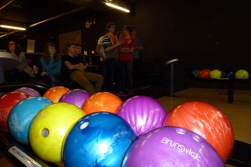 Nachdem die meisten gesättigt wurden, liefen wir in die Bowlinghalle runter, wo wir zwei Runden gebowlt haben.