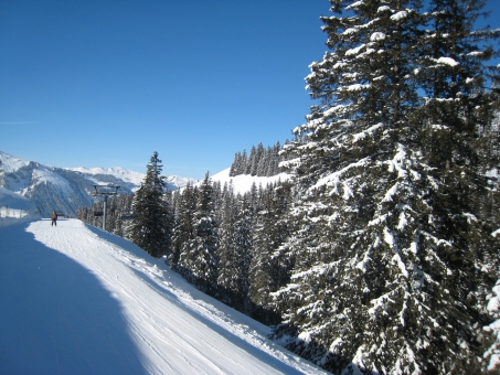 Um 10:00Uhr machten wir uns auf den Weg zur Piste. Um ungefähr 11:00 Uhr konnten wir das erste Mal fahren. Die Piste war ziemlich leer und gut befahrbar, das einzige was etwas störte war die extreme Kälte obwohl das Wetter sehr schön war.