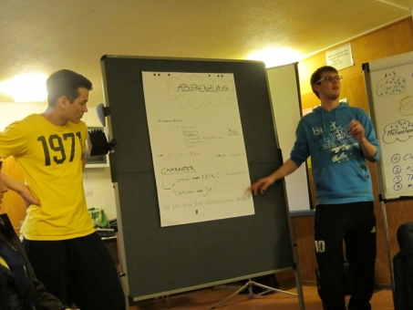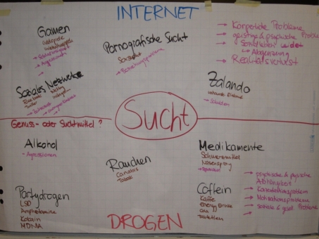 Das 1.Lehrjahr hatte frei. Um 18:30 Uhr gab es Poulet mit Nudelauflauf. Es war köstlich. Am Abend diskutierten wir mit Guido die erarbeiteten Cluster zum Thema Sucht und Abgrenzung.