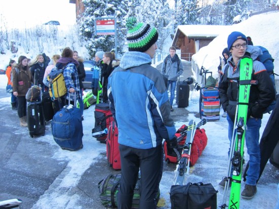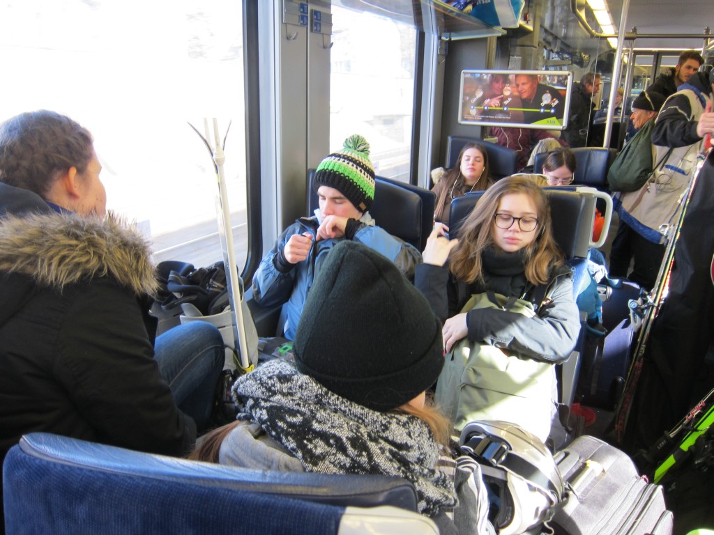 Um 09.15 Uhr packten wir unsere Skier und die Koffer und begaben uns zur Haltestelle Altersheim. Halb zerquetscht kamen wir bei der Adelbodner Post an und warteten auf unseren nächsten Bus. Nach dem Einräumen fuhren wir ca. eine halbe Stunde bis nach Frutigen. Von dort aus ging es weiter bis nach Bern und anschliessend wieder zurück in das schöne Zürich.