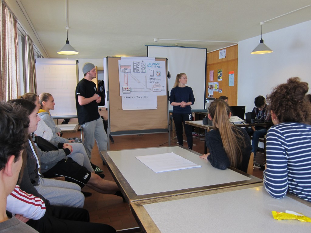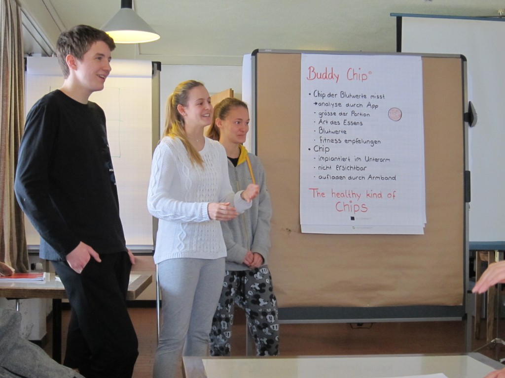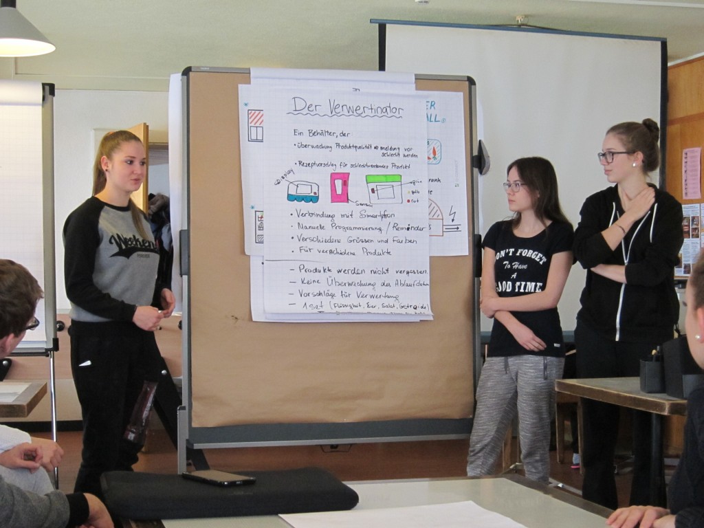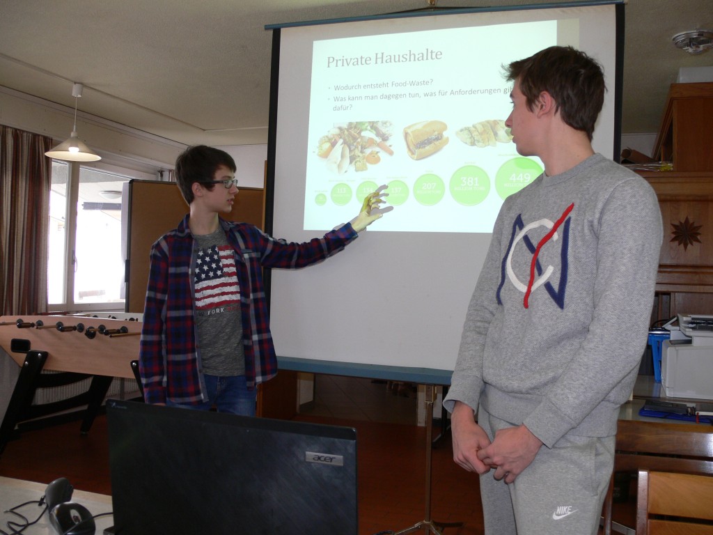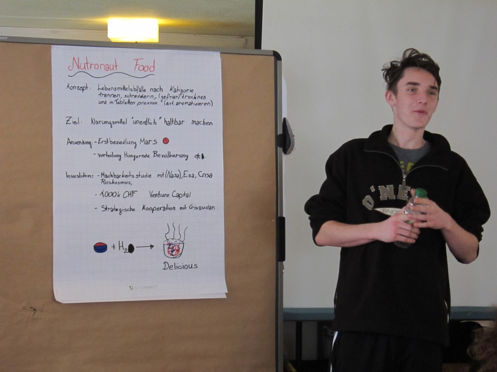 Dort entwickelten wir futuristische Konzepte zur Bekämpfung von Food Waste. Zum Beispiel wurde eine Haltbarkeitsbox mit eigenständig anpassenden Lagerbedingungen vorgestellt oder ein implantierter Computerchip zur Messung der Blutwerte, welche Informationen über eine optimale Ernährung liefern. Die Lösungsansätze wurden anschliessend den anderen Gruppen präsentiert.
