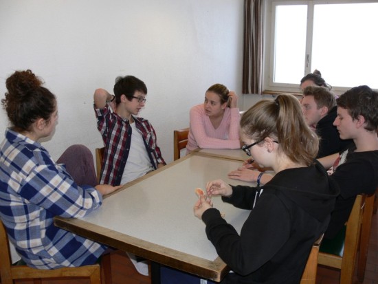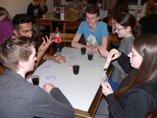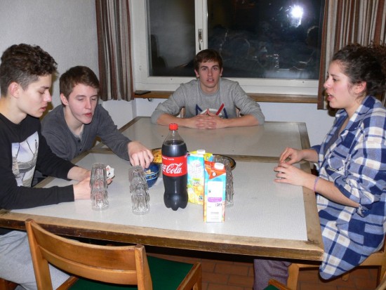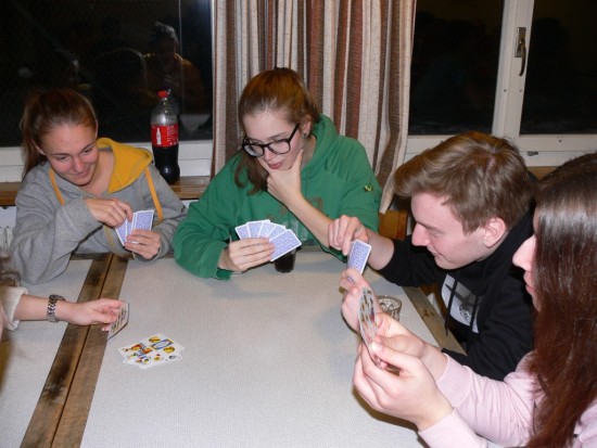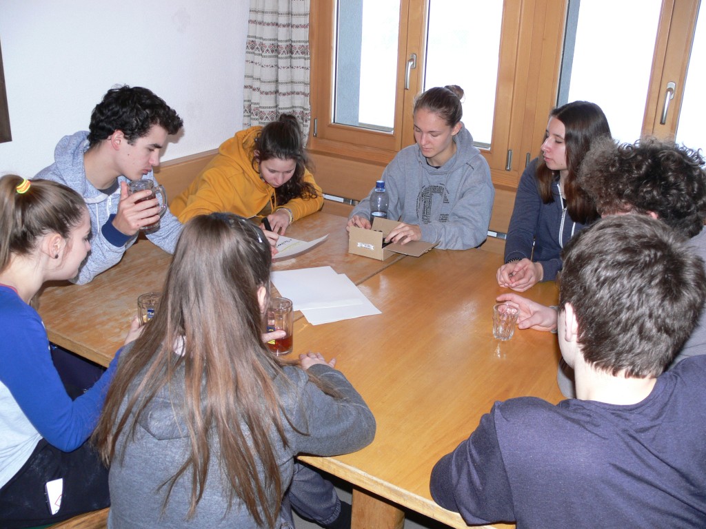 Nach dem Abendessen trafen wir uns zu einem gemütlichen Spieleabend, um den sozialen Zusammenhalt zu stärken. Es wurde gejasst, gearschlöchlet, gegemscht und „Wer bin ich?“ gespielt. Der Abend war sehr kurzweilig, weshalb wir nach gefühlten 5 Minuten schon ins Alpenrösli wechselten, wo wir den Abend ausklingen liessen.