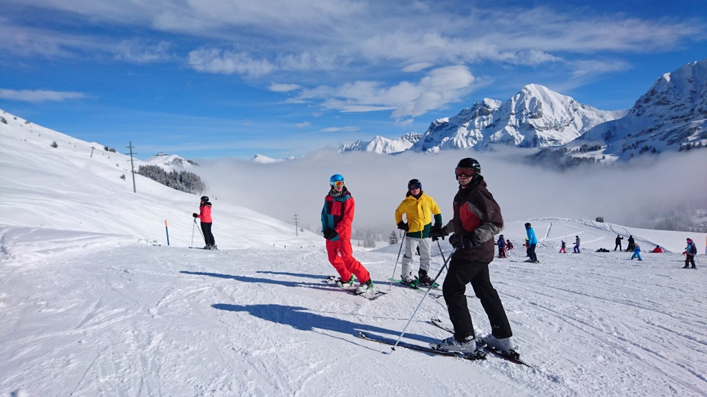 Gegen Ende des Blocks erfuhren wir durch die Webcams, dass im Skigebiet die Sonne den Kampf gegen den hartnäckigen Nebel gewonnen hatte. Deshalb waren dann die Ski- und Snowboardfahrer sehr schnell an der Bushaltestelle und fuhren zur Talstation. Irgendwann währen der Gondelfahrt empfing uns strahlender Sonnenschein und auch die Pistenverhältnisse waren sehr gut.