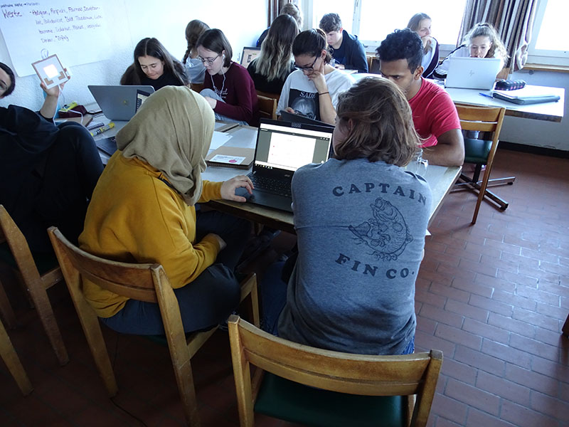 Der Morgen-Block war die Weiterführung vom Donnerstagabend und wurde von Cornel geführt. Es ging um das Programmieren. Die OXOcard waren vom Vortag noch installiert und wir konnten starten in die Welt des Programmierens. In zweier Teams konnten wir uns in die Basics des Programmierens einarbeiten. Und man merkte immer mehr, wie man in den Fluss kommt, oder eben auch nicht. Es war nicht ganz einfach. Sobald ein kleiner Fehler gemacht wurde, ging nichts mehr und man musste solange suchen, bis der Fehler gefunden wurde.