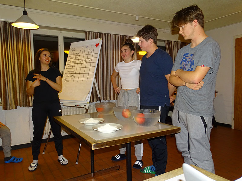 Da es der letzte Abend war, organisierte das dritte Lehrjahr einen Spieleabend, bei welchem nicht nur Talent bewiesen wurde, sondern auch viel gelacht.